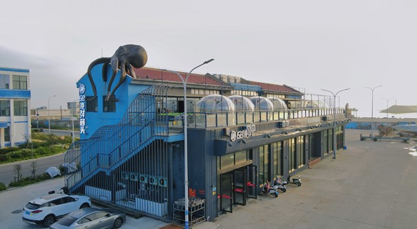 1.1.1.平潭68海鮮碼頭餐廳以“藍眼淚”“漁港”為設(shè)計靈感,通體為克萊茵藍的墻面,層數(shù)為地上二層,結(jié)構(gòu)體系為鋼結(jié)構(gòu),建筑耐火等級二級。建筑高度約10.9米,建筑面積約957.41平方米,其中,一樓面積約663.87平方米,二樓面積約293.54平方米;二樓露天面積約323平方米。