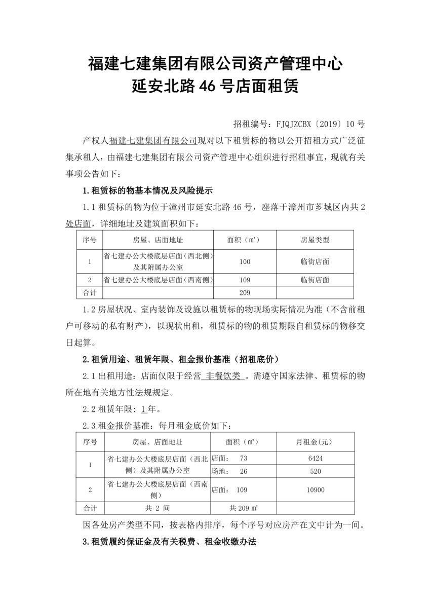 | 名稱 | 福建七建集團有限公司延安北路46號店面租賃 |