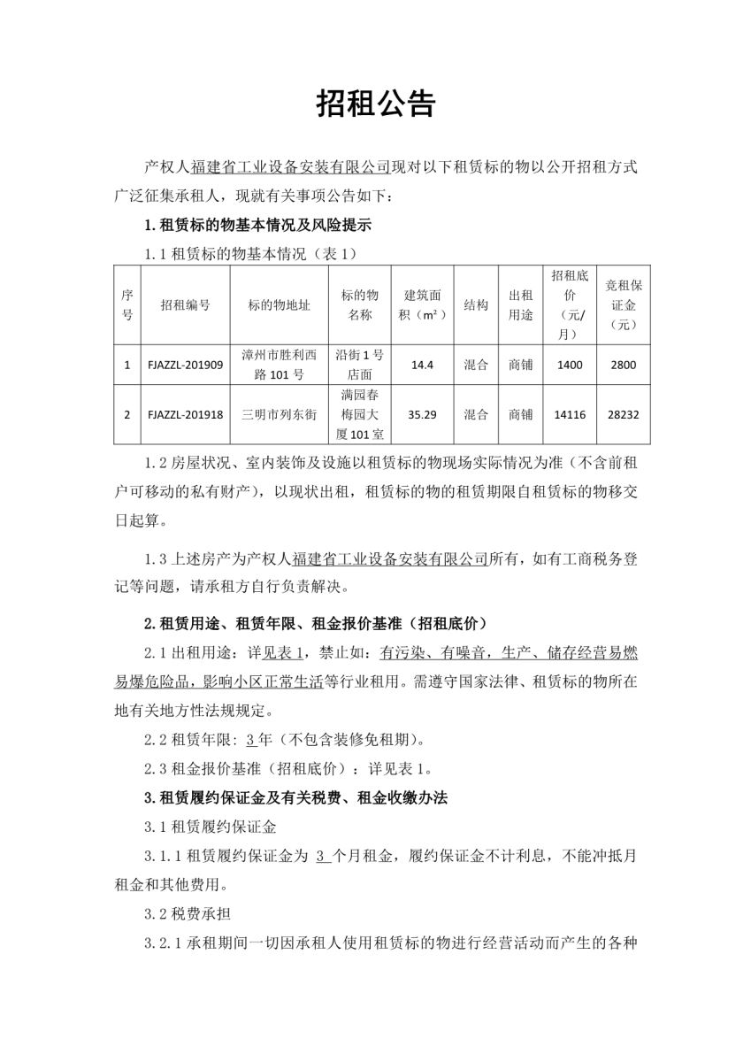 | 名稱 | 漳州市勝利西路101號店面及三明市列東街店面招租公示 |