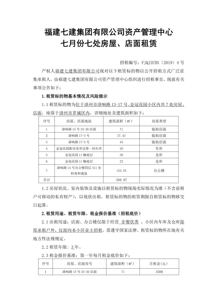 | 名稱 | 漳州市漳響路13-17號、金冠花園小區(qū)內(nèi)共7處房屋、店面招租公示 |