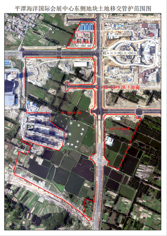 1.1.租賃標的:平潭海洋國際會展中心東側地塊,面積約 928.138畝,其中農用地約814.769畝、建設用地約113.369畝。具體位置見下圖: