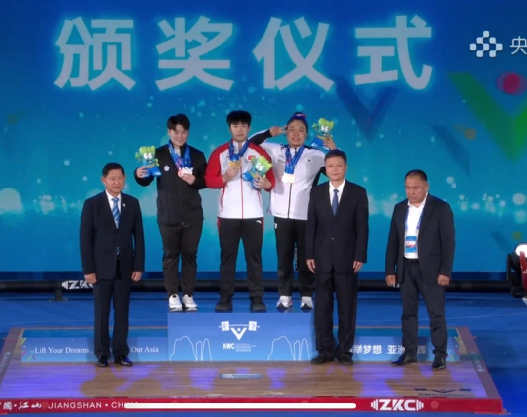 奪得抓舉、挺舉和總成績?nèi)督鹋?/p>