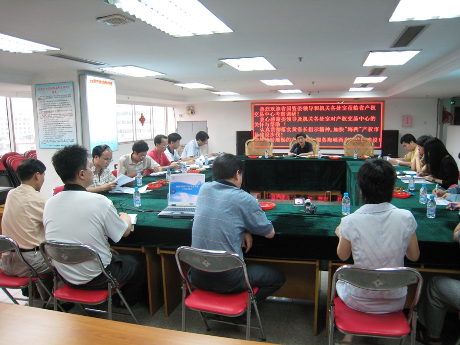 簡訊:為貫徹落實(shí)全國產(chǎn)權(quán)交易工作會議精神和黃小晶省長關(guān)于整合全省市場資源,構(gòu)建“海西”產(chǎn)權(quán)交易市場的批示,二OO七年五月三十日下午省國資委常務(wù)副主任吳炳清帶領(lǐng)省國資委相關(guān)處室領(lǐng)導(dǎo)一行蒞臨省產(chǎn)權(quán)交易中心調(diào)研,專題研究部署如何加快海西產(chǎn)權(quán)交易市場建設(shè)步伐。會議充分肯定了省產(chǎn)權(quán)交易中心在前一階段所做的工作,確定了下一階段的工作重點(diǎn),提出了要堅(jiān)持“兩條腿走路”的方針,既要積極爭取社會各部門、各階層的支持,更要立足國資部門既有的力量,腳踏實(shí)地,冷靜分析,努力進(jìn)取,加快“海西”產(chǎn)權(quán)市場構(gòu)建步伐。