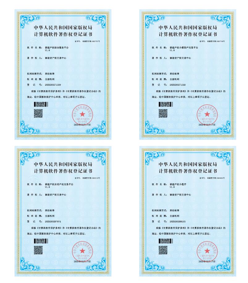 近日,福建省產(chǎn)權(quán)交易中心(以下簡稱中心)的福建產(chǎn)權(quán)綜合服務平臺、福建產(chǎn)權(quán)小額資產(chǎn)交易系統(tǒng)、福建產(chǎn)權(quán)農(nóng)村產(chǎn)權(quán)交易平臺、福建產(chǎn)權(quán)小程序成功取得由中華人民共和國國家版權(quán)局審核認定頒發(fā)的《計算機軟件著作權(quán)登記證書》,標志著中心在軟件開發(fā)與技術(shù)創(chuàng)新領域取得了重要成果,為后續(xù)深化技術(shù)創(chuàng)新、拓展市場應用奠定了堅實基礎,進一步提升了中心的核心競爭力與社會影響力。