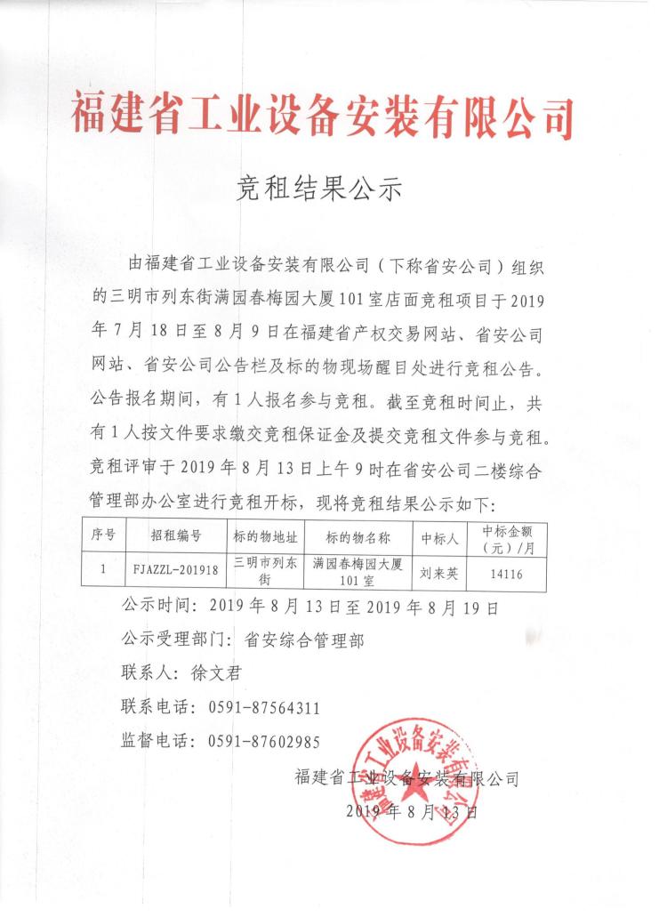 | 租賃(承包)標(biāo)的 | 三明市列東街滿園春梅園大廈101室店面競租結(jié)果公示 |